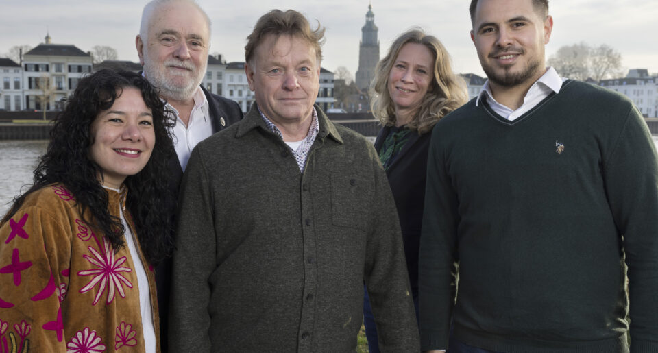 Van links naar recht Samira Lekatompessy, Kees van Toor, Gerard Pelgrim, Meike Wesselink en Mehmetali Görmez De Stadspartij Zutphen-Warnsveld heeft haar kieslijst voor de gemeenteraadsverkiezingen...